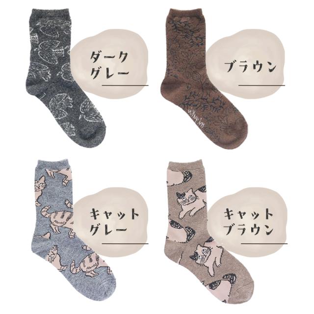 落ち着いたカラーにかわいいプリントがマッチしたソックス。