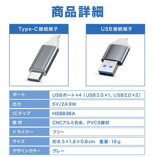 USBハブ 3.0 4ポート Type-C タイプc 増設 高速USB typeC USB3.0 データ転送 デスクワーク コンパ