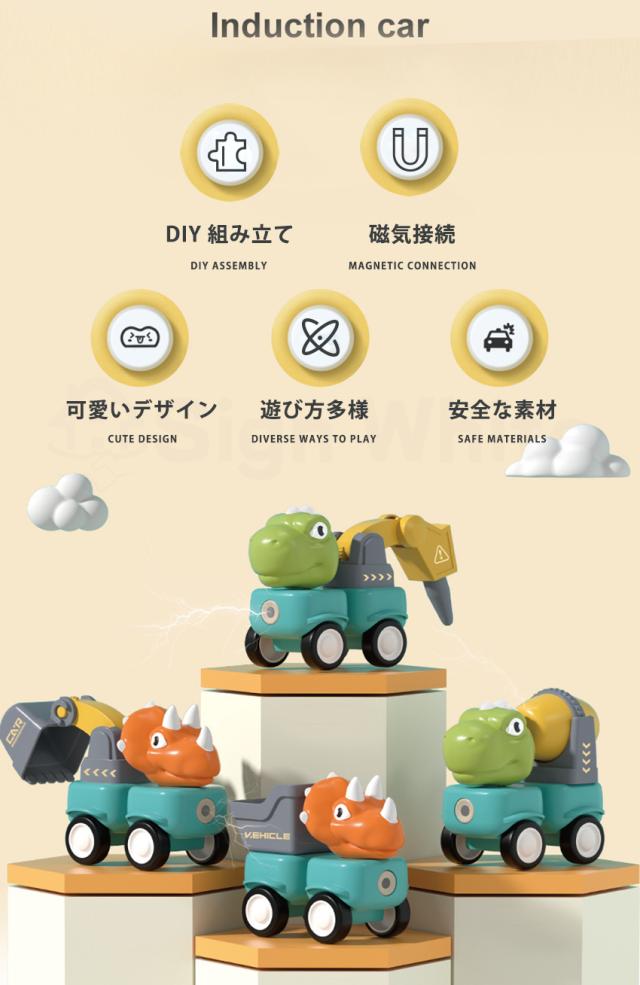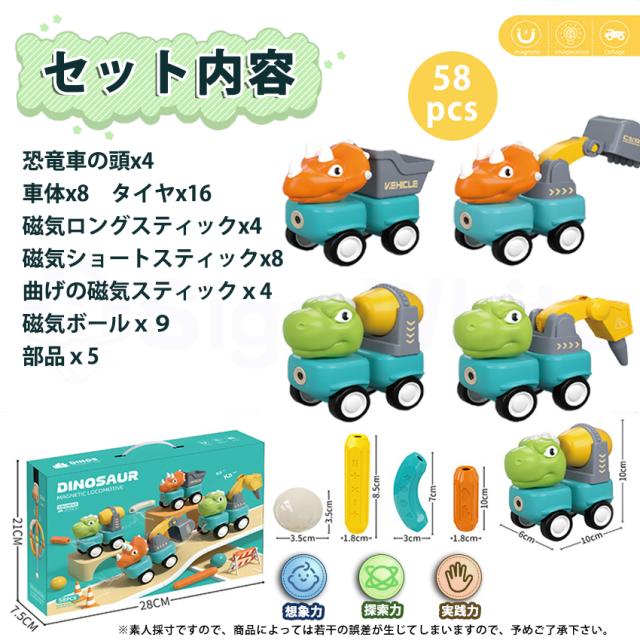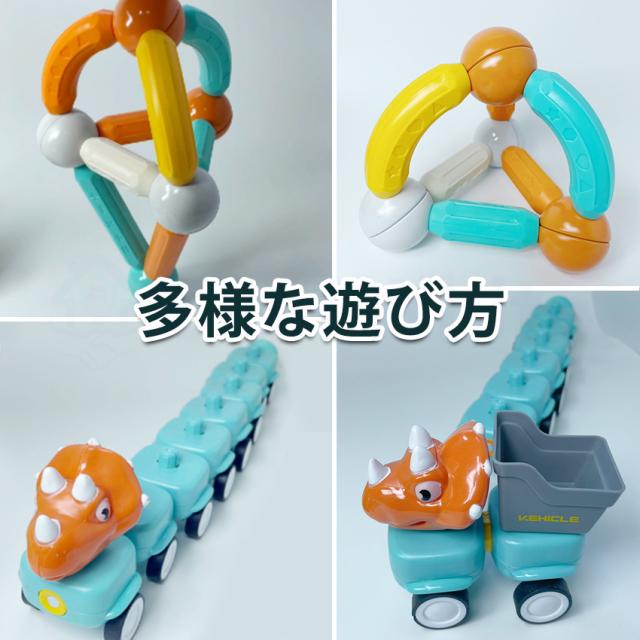おもちゃ 知育玩具 恐竜 おもちゃ 組み立て おもちゃカー 磁気 DIY ビルディングブロック DIYカー 恐竜車 車 人気 子供
