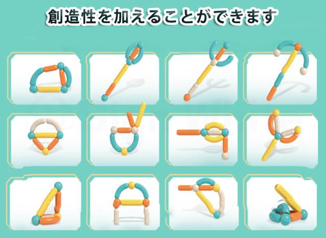 磁気スティックを利用し、さまざまなアイデアを思い出し、異なる造型を作れます。