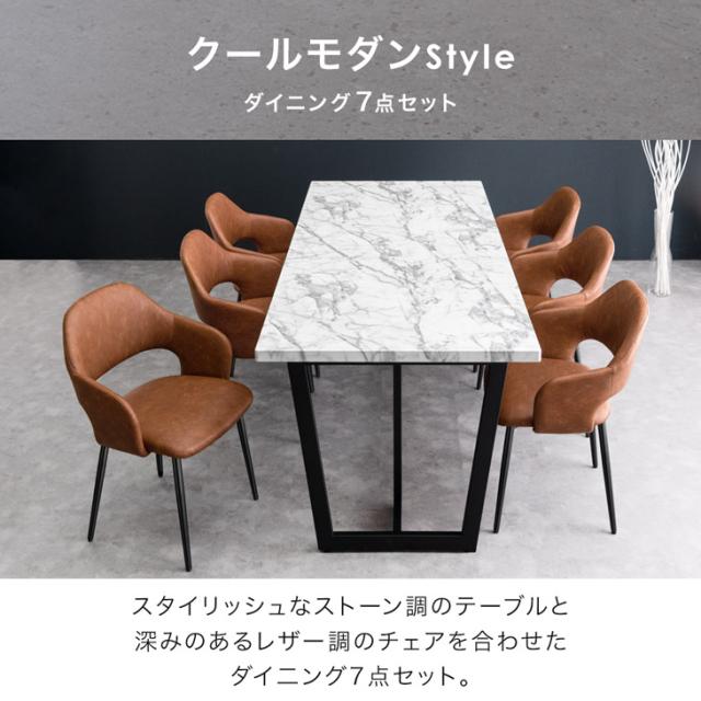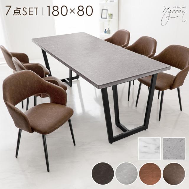【本日P5%還元】 ダイニングテーブルセット 6人掛け 7点セット 180cm 石目調 テーブル ダイニングセット ダイニングテーブル ダイニングチェア チェア 180 6人 6人掛 6人用 7点 大理石調 ダイニング 【超大型】【後払/時間指定NG】