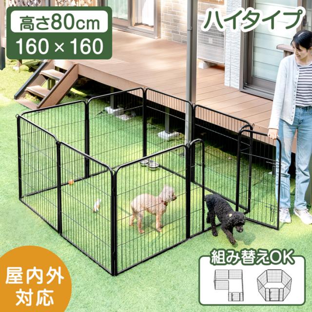 ペットサークル ハイタイプ 屋内外兼用 スチール 高さ 80cm バリアフリー ドア ロック ワイド ドッグ ケージ ゲージ ドッグサークル サークル ペットケージ ペットサークル ドア付 扉付 滑り止め 犬 小型犬 中型犬 大型犬