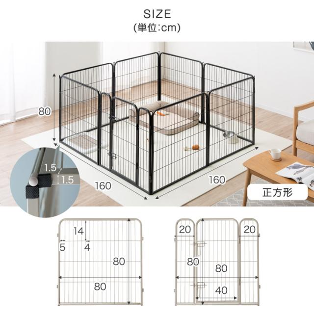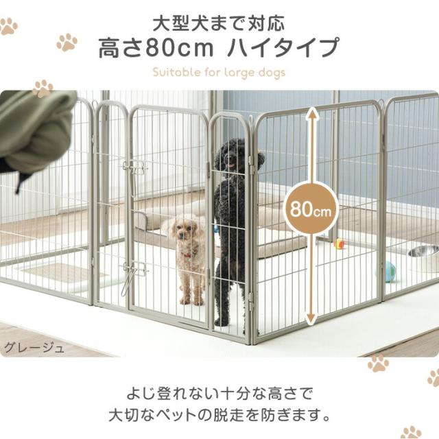ペット サークル バリアフリー ハイタイプ 高さ80cm スチール ペットゲージ ドッグゲージ ドッグフェンス ペットフェンス 犬ケージ 屋外 室外 犬用品 犬用 おしゃれ グレージュ ブラック
