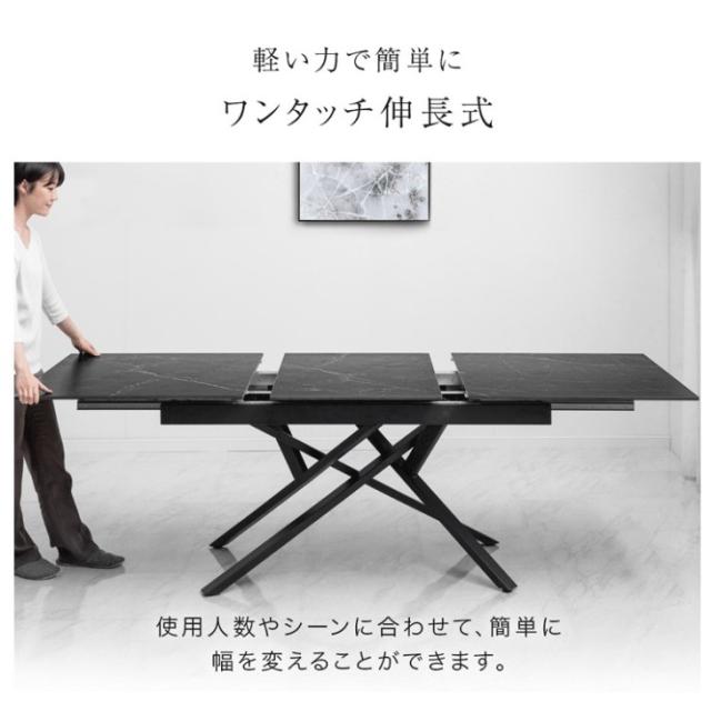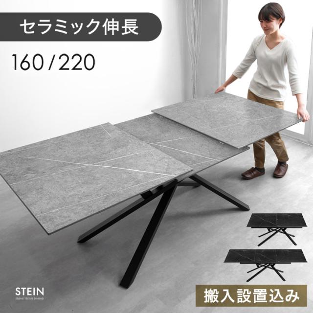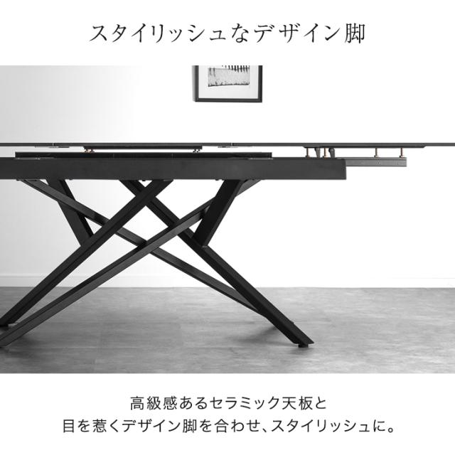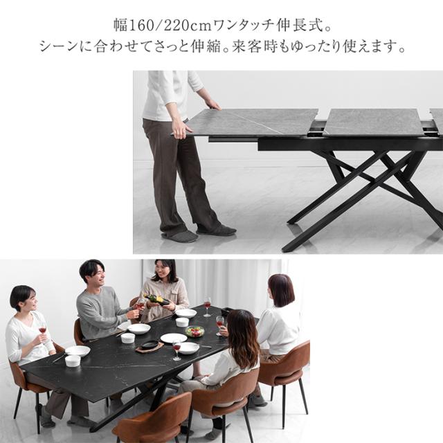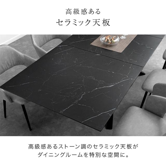 伸長式ダイニングテーブル セラミックテーブル 160cm 220cm エクステンションテーブル 伸縮テーブル テーブル 黒 ブラック グレー おしゃれ 北欧 モダン 4人掛 4人用 6人掛 6人用 黒脚