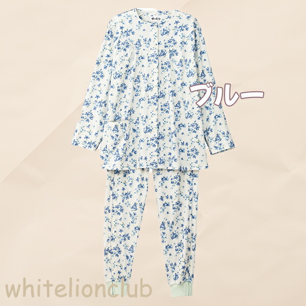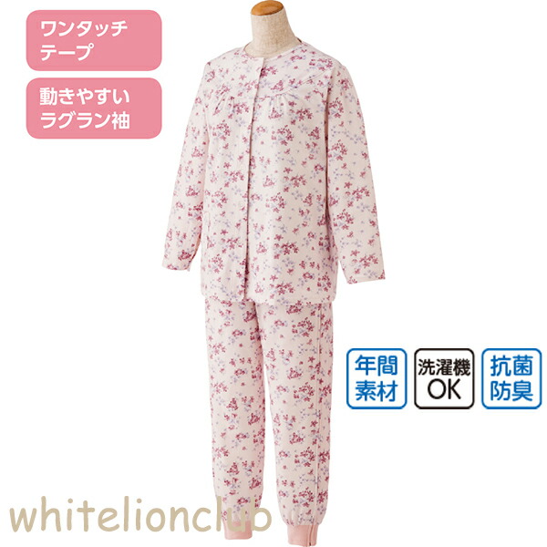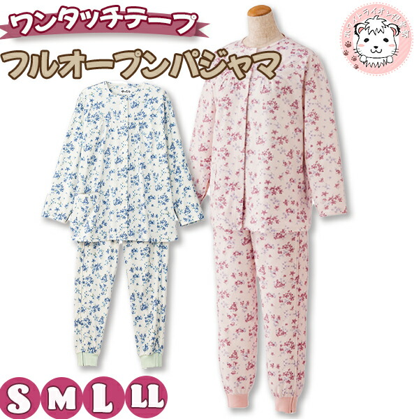 介護パジャマ ワンタッチテープ フルオープンパンツ 長袖パジャマ 足首リブ付き S/M/L/LL | レディース 前開き 全開パジャマ パジャマ かわいい