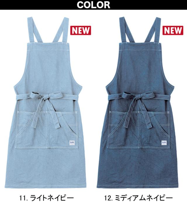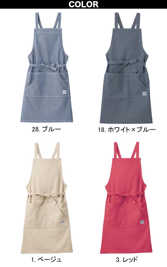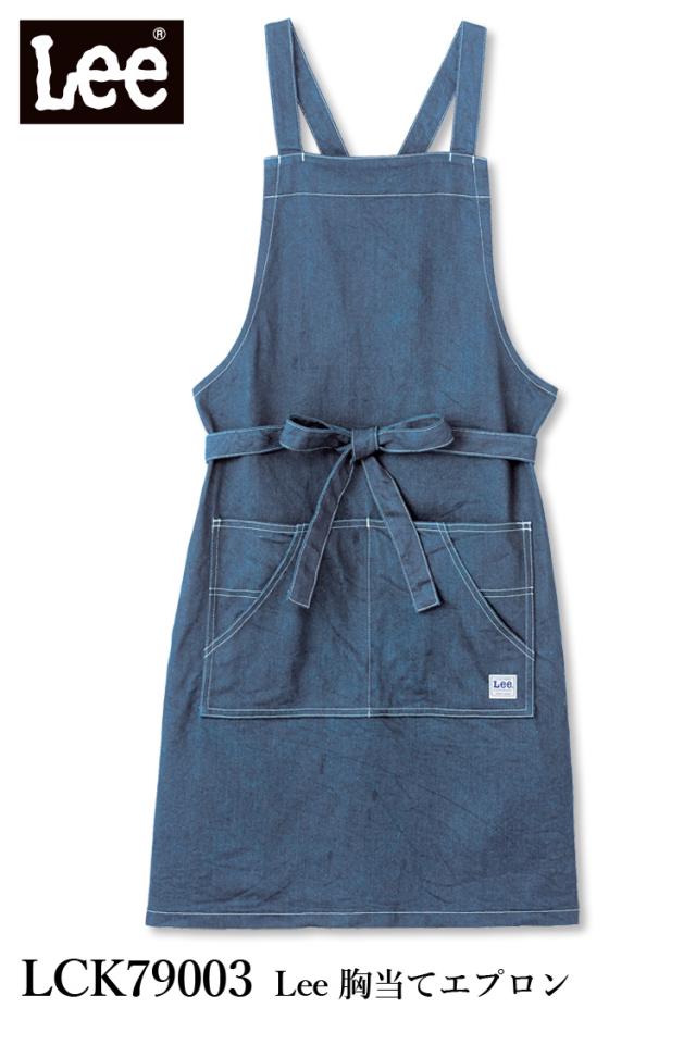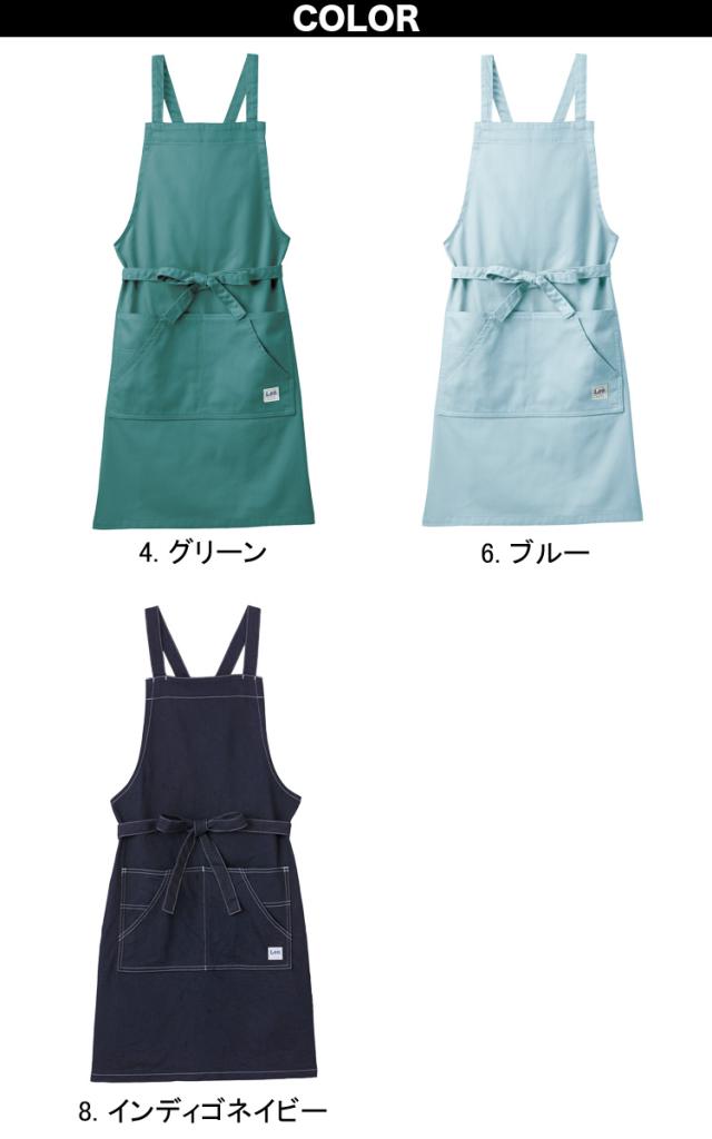 Lee 胸当てエプロン LCK79003 男女兼用 ひざ丈 サービス カフェ おしゃれ かわいい ダイニング リー デニム ヒッコリー 前掛 飲食店 ユニフォーム ボンマックス