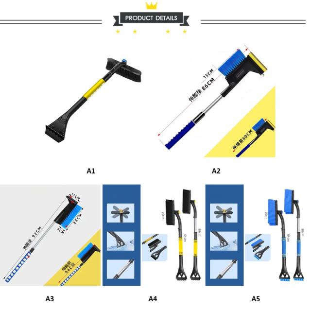 積雪を迅速かつ効率的に処理する伸縮可能4in1スノーブラシ&スコップです。
