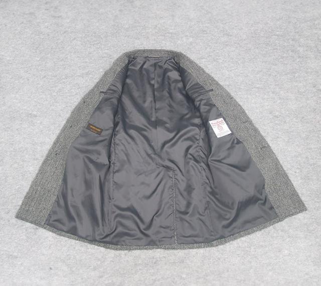 英国生地 [Harris Tweed]ハリスツイード チェスターコート 薄グレー系ヘリンボーン シングル3釦 秋冬物 HTC-C19