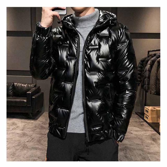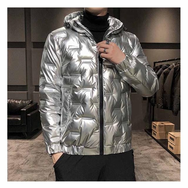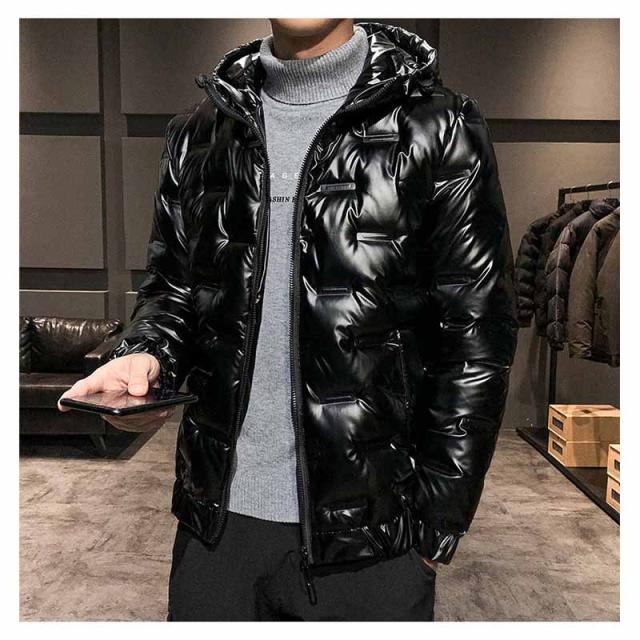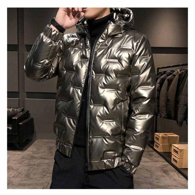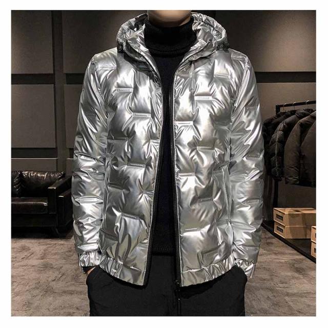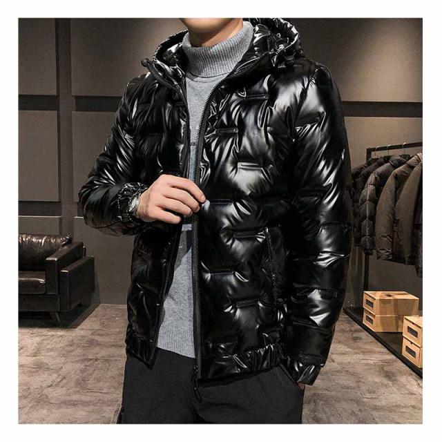 ダウンジャケット メンズ 光沢感 防寒ジャケット 厚手ジャケット 無地 フード付き 白ダウン ワークジャケット 防寒着 アウター