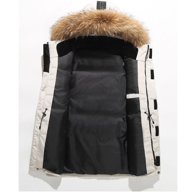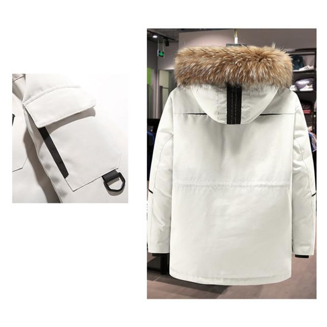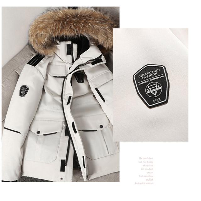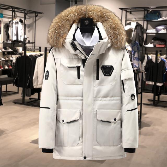 ダウンジャケット メンズ ファーフード着脱 防寒ジャケット 厚手ジャケット 無地 フード付き 白ダウン ワークジャケット 防寒着