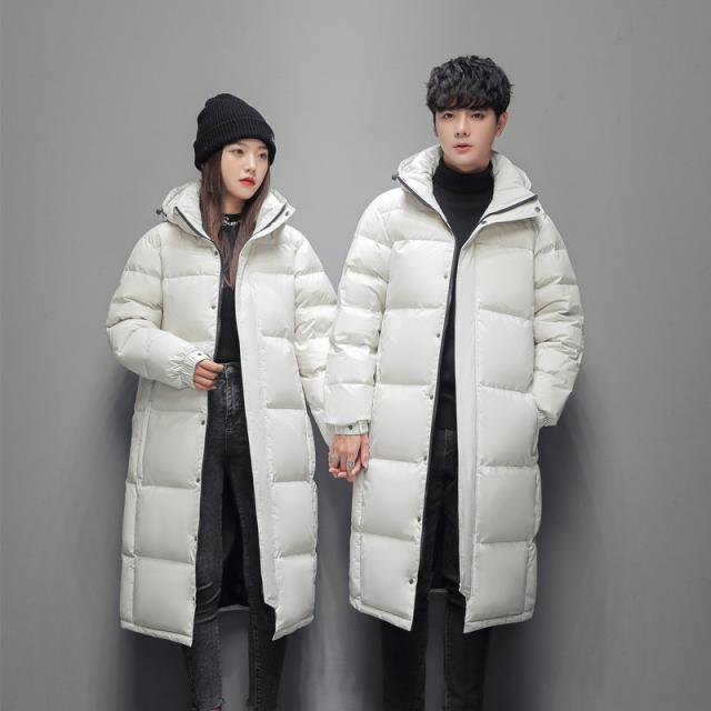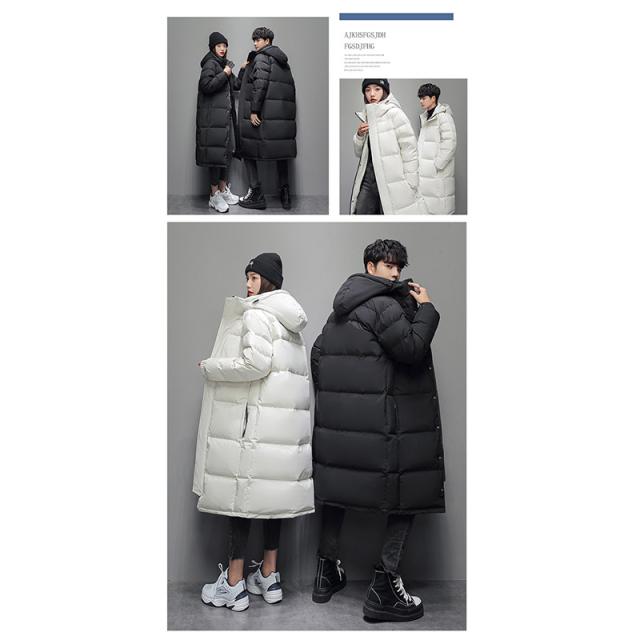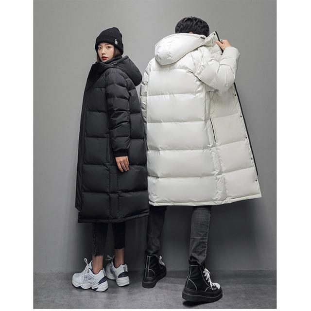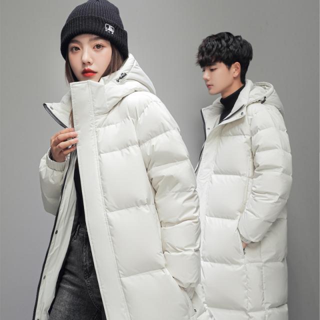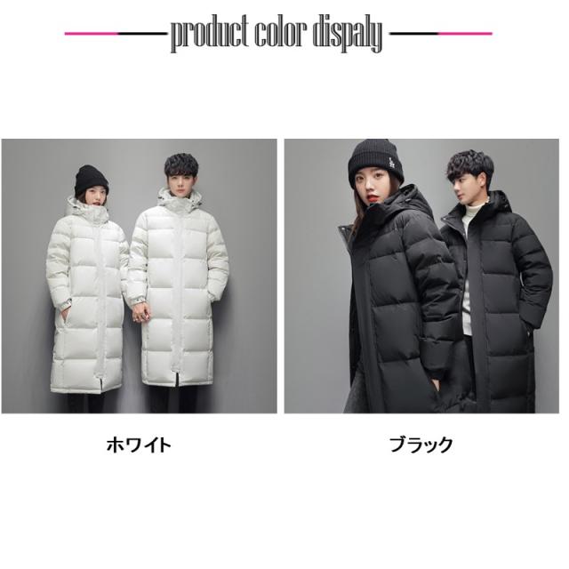 2点で10%OFF!ダウンジャケット メンズ ロング丈 カップル 防寒ジャケット 厚手ジャケット 無地 フード付き 白ダウン 防寒