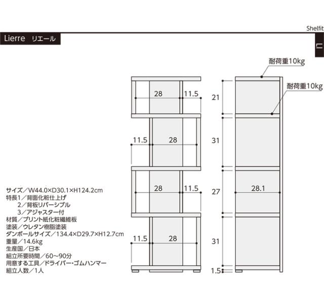 日本製 デザインシェルフ リエール 幅44cm 高さ124.2cm S字ラック ディスプレイ ツートン 書棚 本棚 シェルフ 収納ラック 木製 国産 シンプル 北欧 モダン おしゃれ(代引不可)【送料無料】