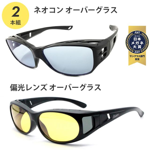 ネオコントラスト テクノロジー サングラス オーバーグラス 2本組 【レビューでポイント10%還元】 ナイト ドライブ 昼夜兼用 オーバーサングラス 眼鏡の上から 薄い 色 UVカット 白内障 手術後 保護メガネ 鯖江 眼鏡 雨 車 SC102+SC51K-Y75