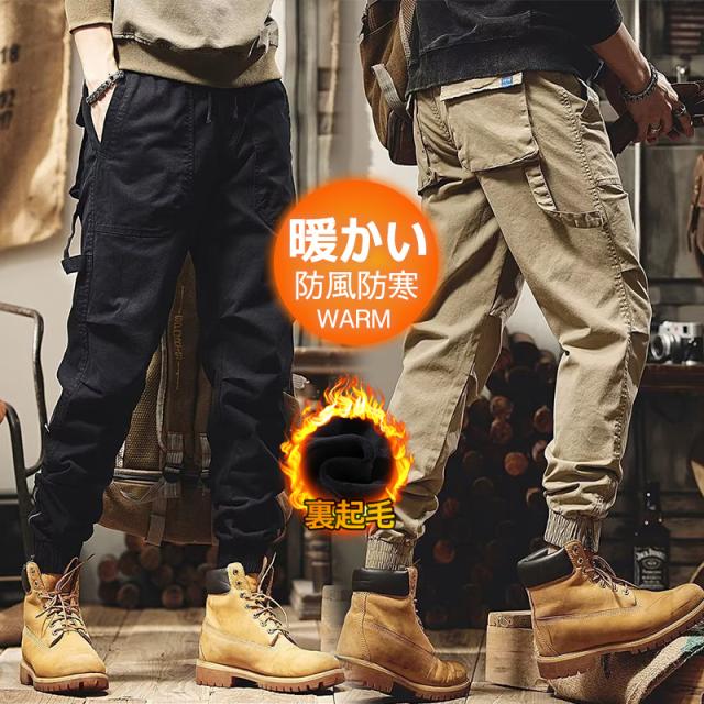カーゴパンツ メンズ ミリタリー ワークパンツ マルチポケットズボン 裏起毛 防寒パンツ 裏ボア 暖パンツ 作業着 秋冬 防風 ア