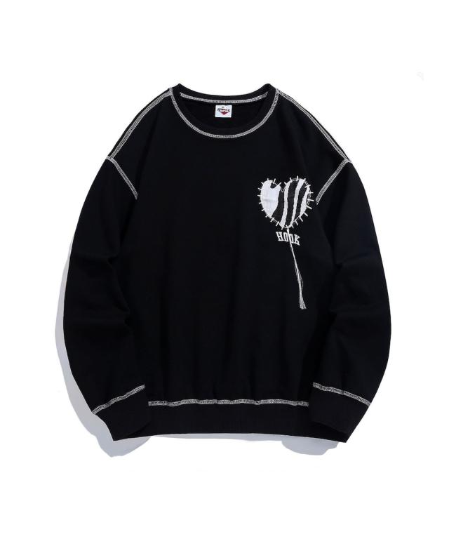 フック(HOOK)/ゼブラ模様ハートパッチ飾りステッチスウェット