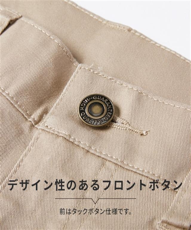 洗いざらし感が魅力のチノパンツ。程よいフィット感のレギュラーシルエットで、着回しにも便利です。4レングスから選べるから、裾上げ不要でラクラク!動きにフィットするストレッチ素材を採用しました。ウエスト97cm以上は内股部分に当て布付きで表地の擦り切れを軽減します。【豊富なサイズから選べる】豊富なサイズ股下は4レングスから、ウエストは18サイズからお選びいただけます!ぜひピッタリサイズ、お好きな着用感のパンツをお探しください!【素材】シーズン問わず履いていただける綿混紡の素材を採用ポリウレタン糸を使用しておりストレッチ性があり動きやすさを実現【こだわりの仕様】着用時ストレスのかかりやすい部分にはカン止めステッチやリベットボタンで補強をしています。ウエスト97cm以上には内股部分に当て布付きで表地の擦り切れを軽減します。