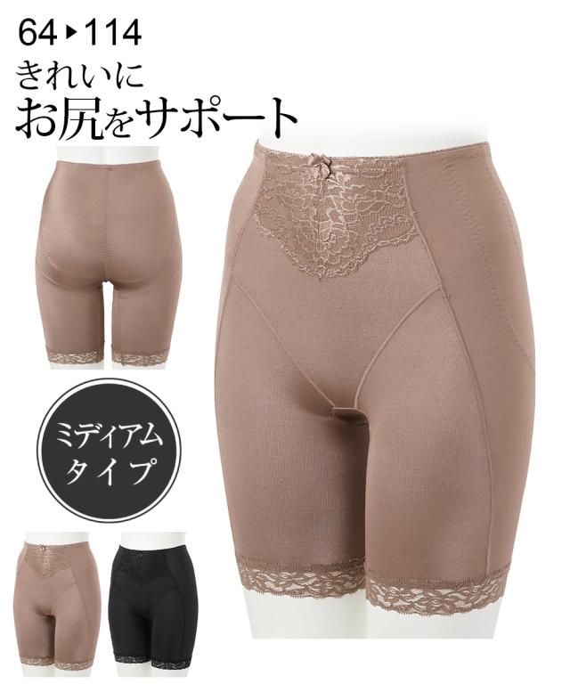 ガードル 大きいサイズ レディース きれいにお尻サポート ロング ブラウン/ブラック ウエスト98/106/114cm ニッセン nissen