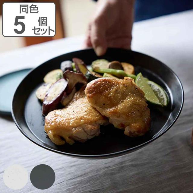 プレート 23cm L KASANE カサネ 陶器 同色5枚セット ( 食洗器対応 中皿 お皿 皿 積み重ね パスタ カレー ワンプレート シンプル モダン モノトーン おしゃれ )