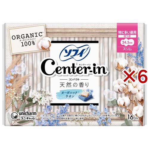 センターインコンパクト1/2オーガニックサボン 特に多い昼用 生理用品(16枚入×6セット)[生理用品 その他]
