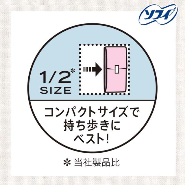 ●普通のスリムナプキンの1/2※のコンパクトサイズだから、持ち歩きにベストな上に、自然な良い香りがするナプキンです。※メーカー製品比