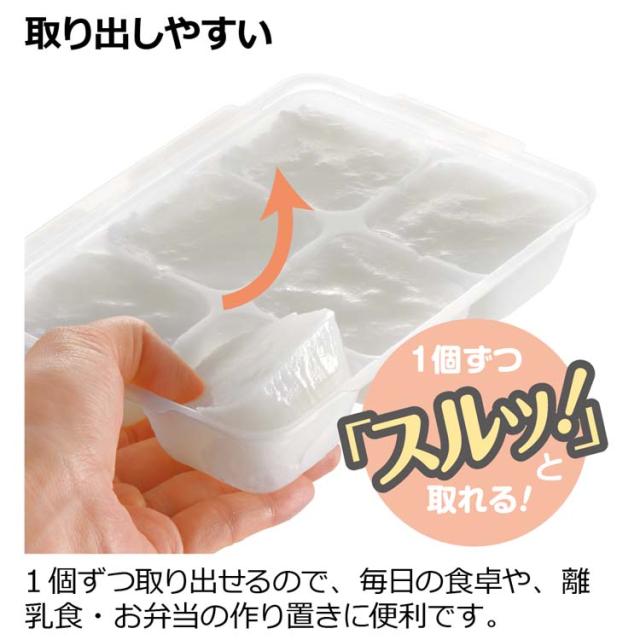 | サイズ(1セット):12.7*17.5*3.4H(cm) 容量:50ml*6ブロック 材質:ポリプロピレン 電子レンジ解凍OK 食器洗い乾燥機OK 煮沸・薬液・電子レンジ消毒OK |