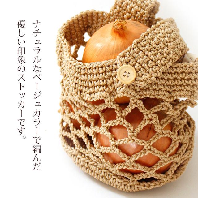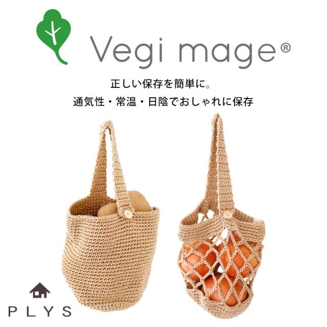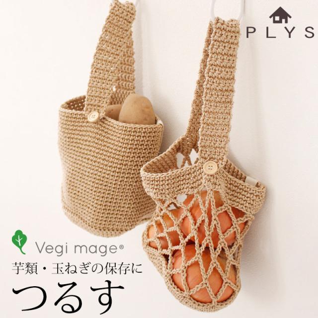 PLYS ベジマジ つるす 野菜ストッカー 野菜保存 じゃがいも用 玉ねぎ用 吊るす 芋 かご カゴ 編みバッグ ベジタブル 保存袋 保管 備蓄 収納 通気性 おしゃれ かわいい 編みかご ベージュ キッチン雑貨