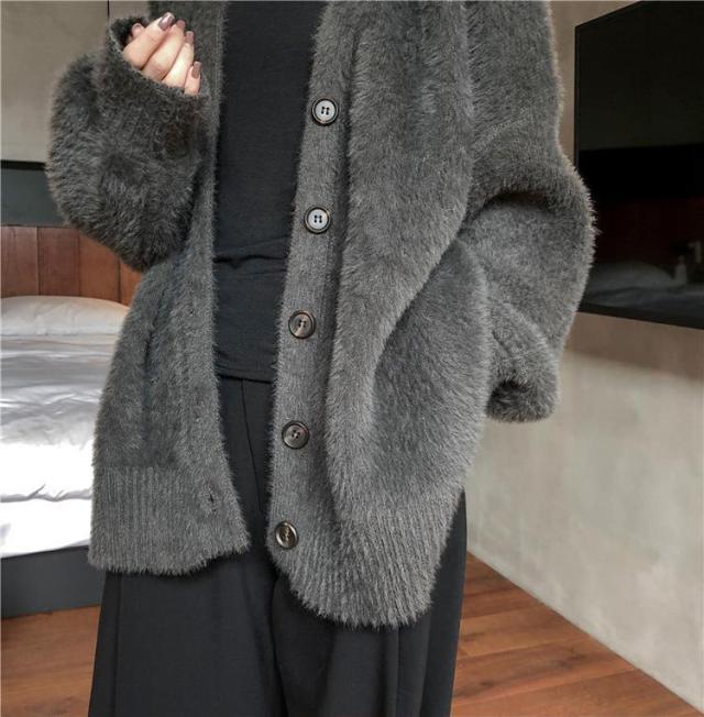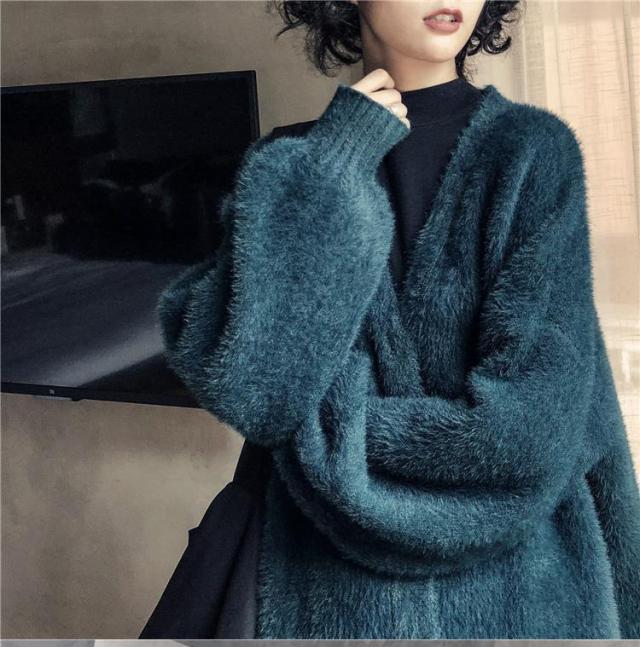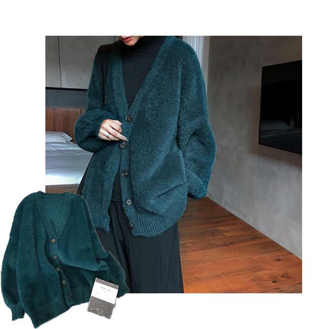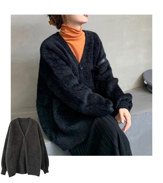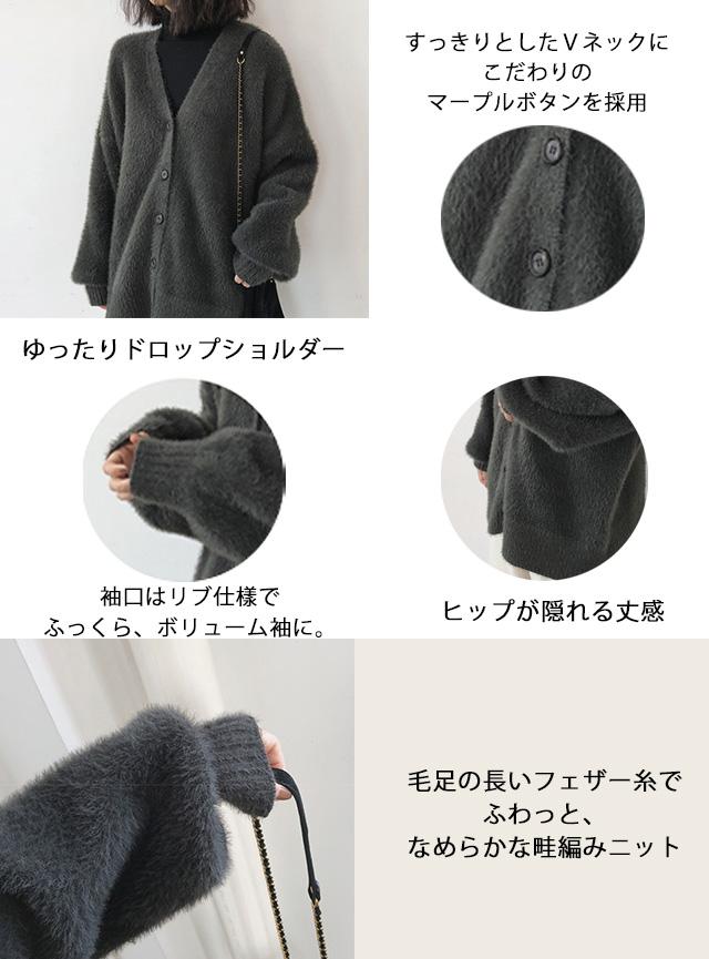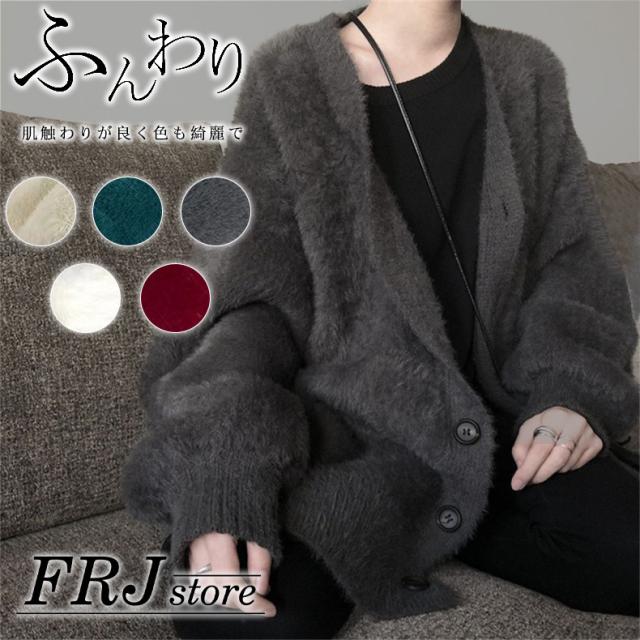 カーディガン秋冬定番・シャギーカーディガン カーデ もこもこ あったか レディース 袖ゆったり アウター バルーンスリーブ