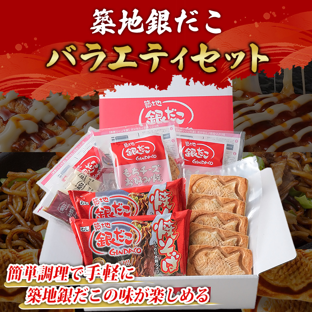 ・3種類の味わいが詰まった「築地銀だこ バラエティセット」をお届けします。