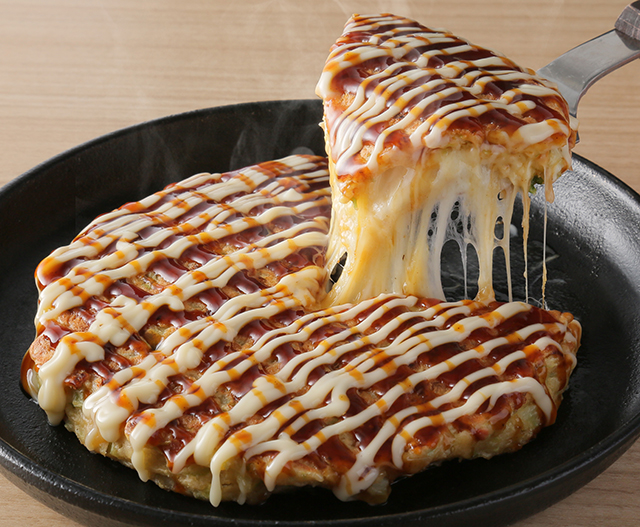 ・「築地銀だこ もちチーズお好み焼」は、築地銀だこ特製のミックス粉とだしを使用した生地が楽しめます。