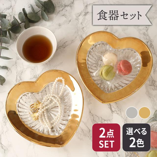 2個セット ハート型ガラスボウル 19.5cm 訳あり・アウトレット ボウル 鉢 洋食器 おしゃれ 食器 ガラス食器 透明 クリア ハート 中鉢 菓子鉢 アクセサリートレイ かわいい 高級感 華やか