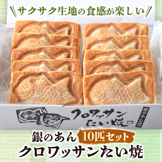 ・サクッとした生地がおいしい「銀のあん クロワッサンたい焼 10匹セット」をお届けします。