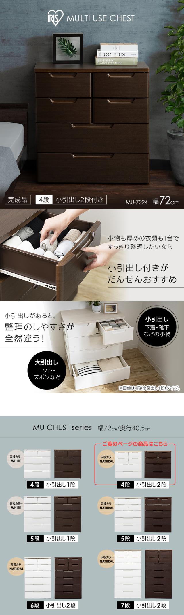 チェスト 4段 アイリスオーヤマ 完成品【2個セット】マルチユースチェスト アイリスオーヤマ ホワイト/ナチュラル 木目ブラウン MU-7224 収納 衣類収納 衣類チェスト タンス 箪笥 たんす チェスト 引出 ひきだし 引出し 洋服箪笥 送料無料