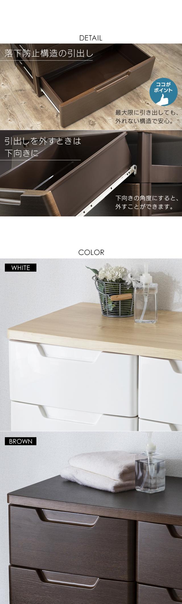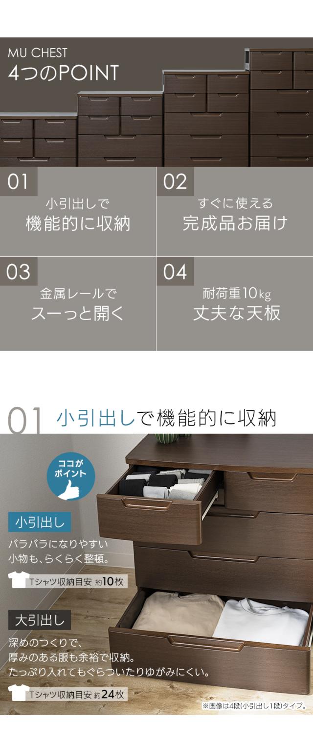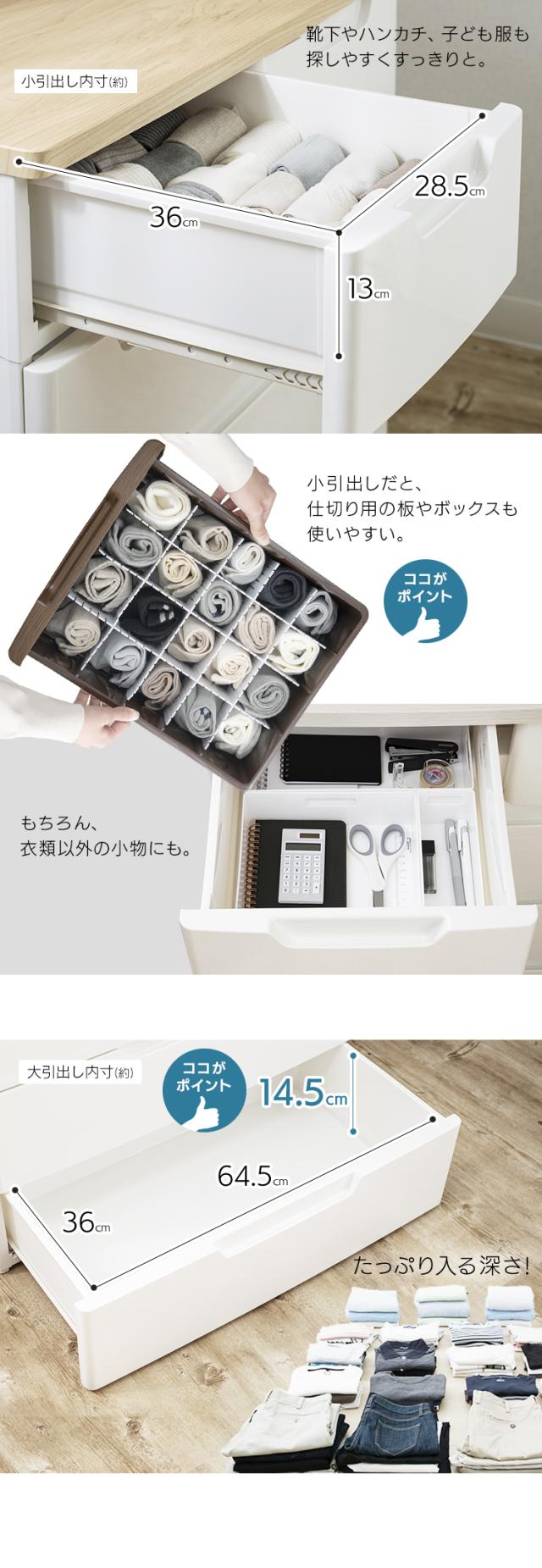 小引き出しには小物、大きい引き出しには衣類など 1つのチェストで様々なものを収納できます。