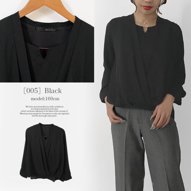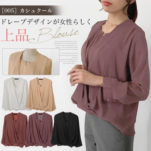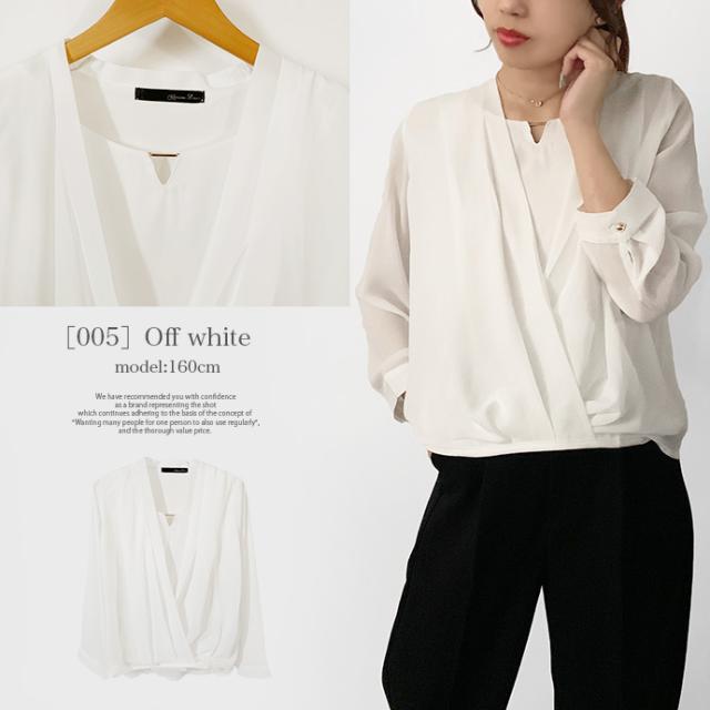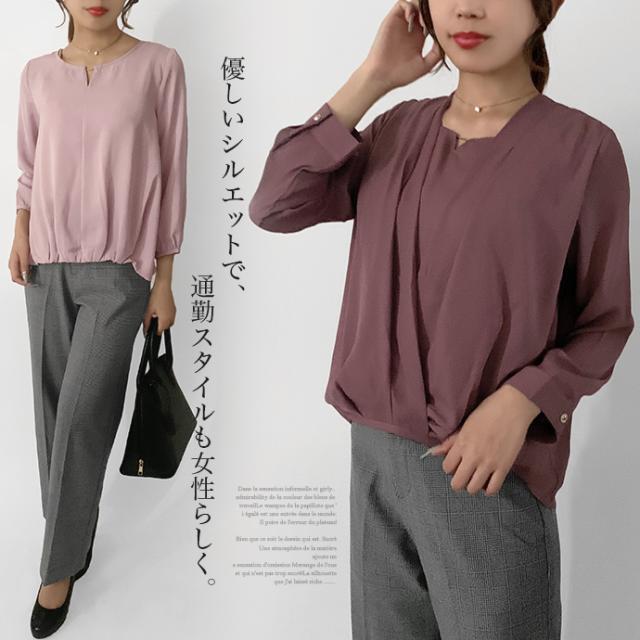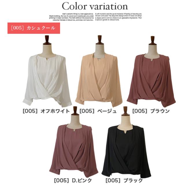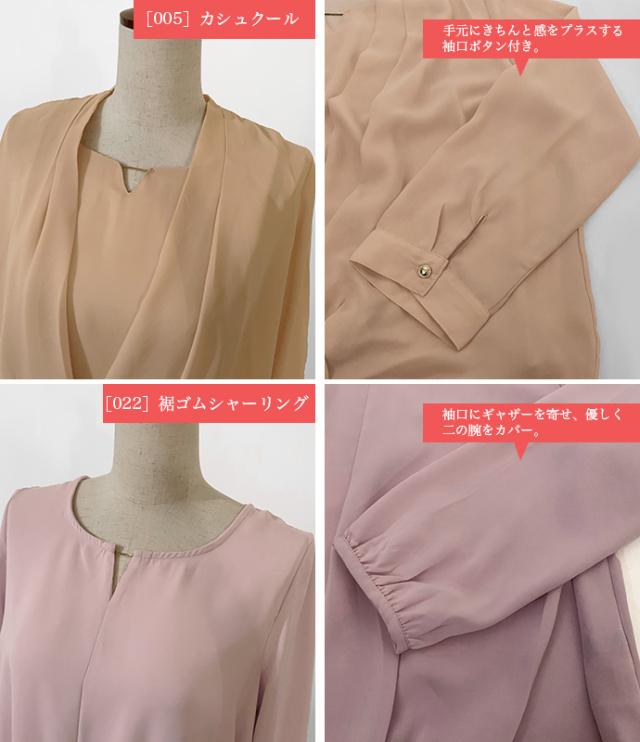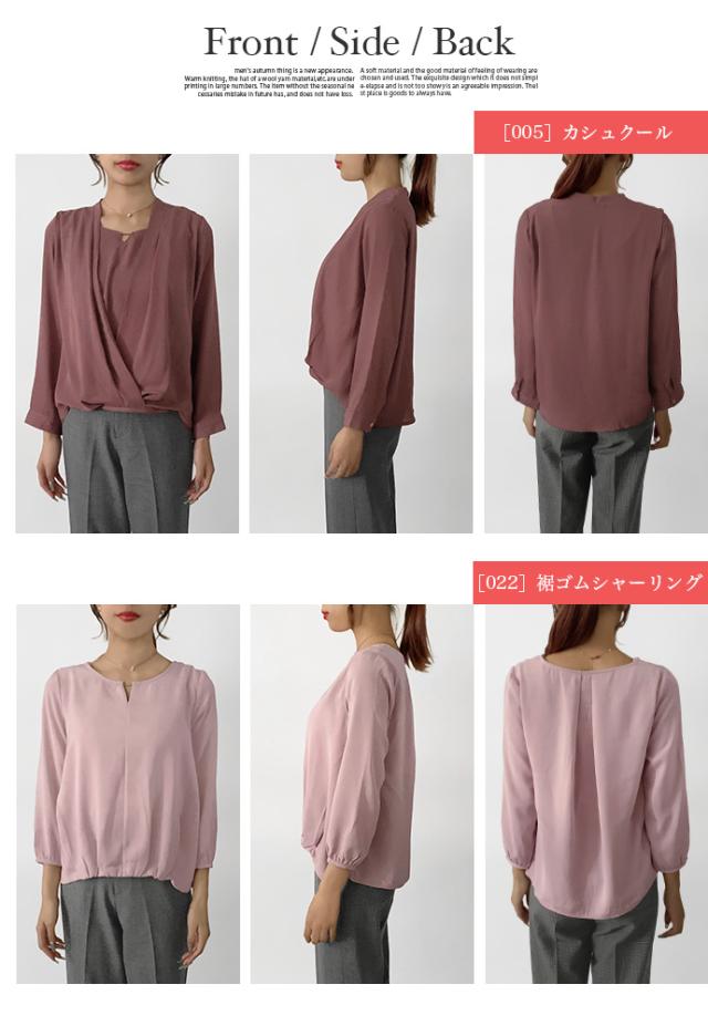 ブラウス シャツ トップス 長袖 ミドル丈 キーネック 金具 ジョーゼット シフォン カシュクール 裾ゴムシャーリング 無地 カジュアル キレイめ オフィス 値下げス セールス 送料無料