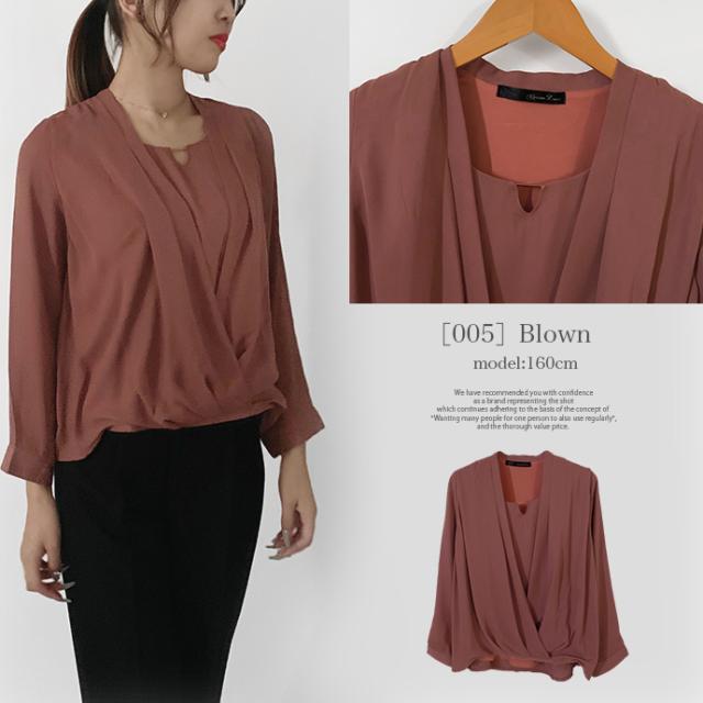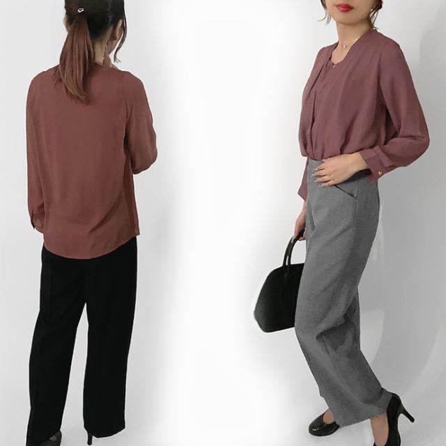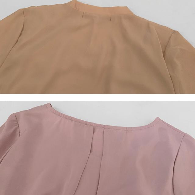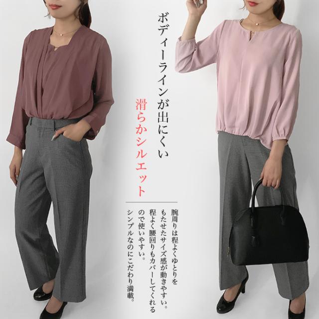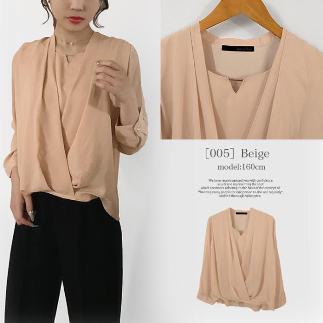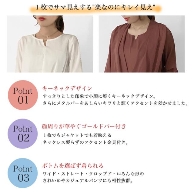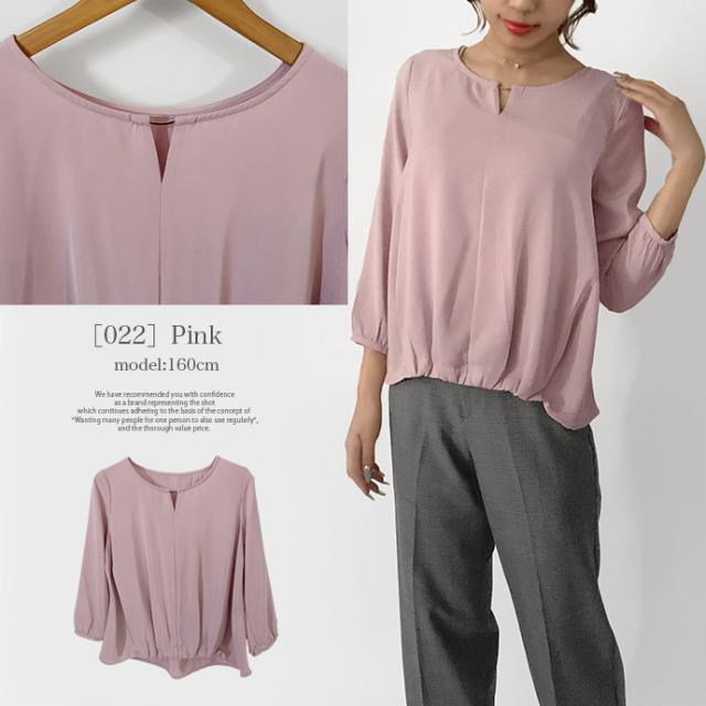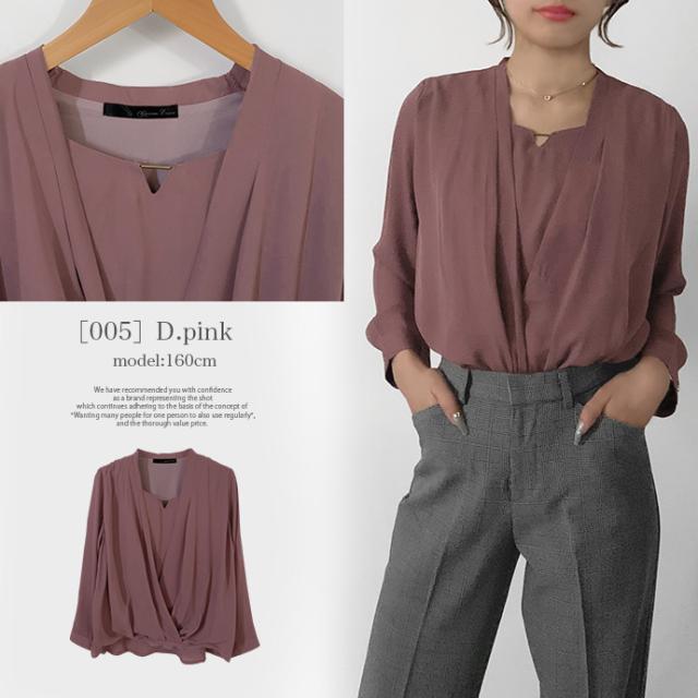 ブラウス シャツ トップス 長袖 ミドル丈 キーネック 金具 ジョーゼット シフォン カシュクール 裾ゴムシャーリング 無地 カジュアル キレイめ オフィス 値下げス セールス 送料無料