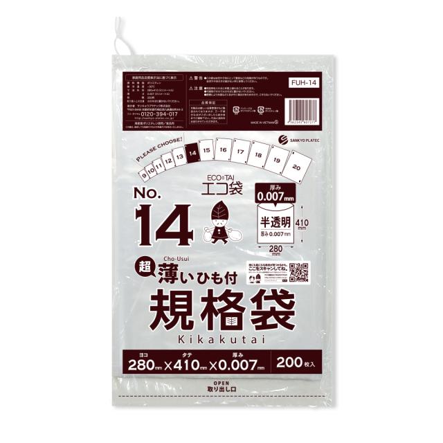 ひも付 規格袋 14号 薄手 半透明 28x41cm 0.007mm厚 200枚 FUH-14bara /ポリ袋 袋 平袋 保存袋 食品袋 食品検査適合 RoHS指定