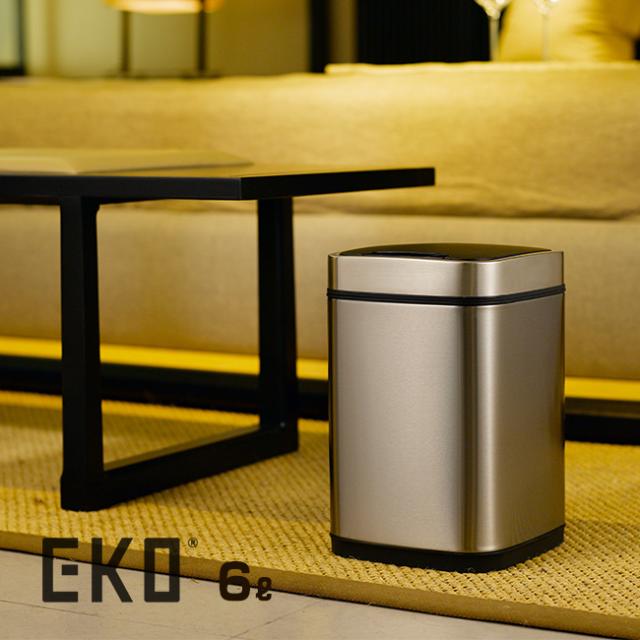 EKO エコスマート X 充電式センサービン 6L(ゴミ箱 6リットル おしゃれ 自動開閉 センサーゴミ箱 センサー式 ごみ箱 USB 充電式 ステンレス キッチン ダイニング 洗面所 洗面室 寝室 小さい 小型 角型 モダン スタイリッシュ)