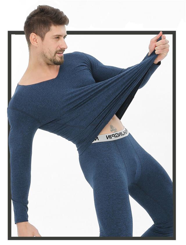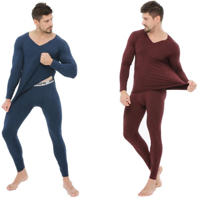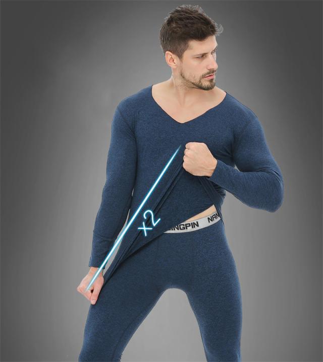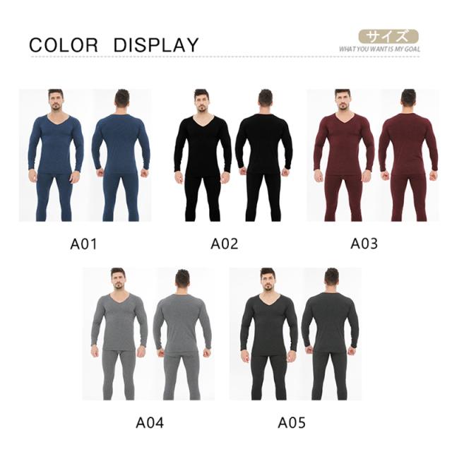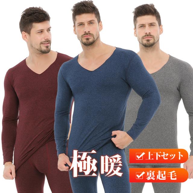 インナー メンズ インナーセット Vネック 発熱 上下セット シームレス 伸縮性 裏起毛 無地肌着 切りっぱなし 保温 暖かい 防