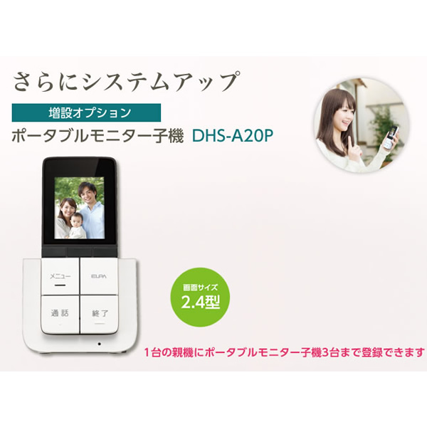 在庫あり テレビドアホン用 増設ポータブルモニター子機 DECT方式ワイヤレステレビドアホン用 ELPA 朝日電器 DHS-A20P