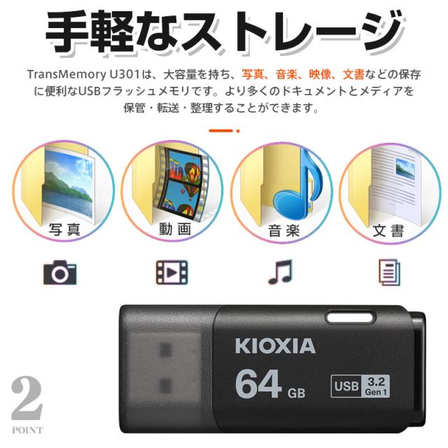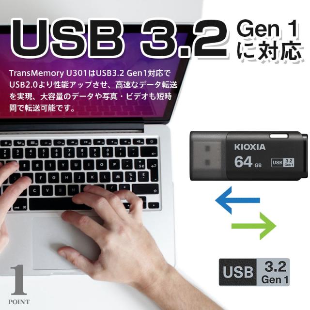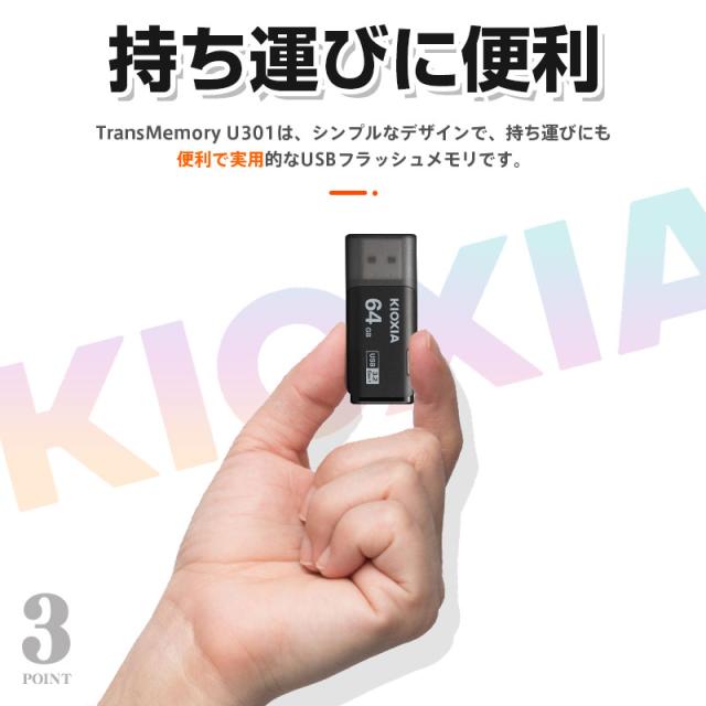USBメモリ64GB Kioxia USB3.2 Gen1 日本製 LU301K064GC4 海外パッケージ ネコポス送料無料 ポイント消化