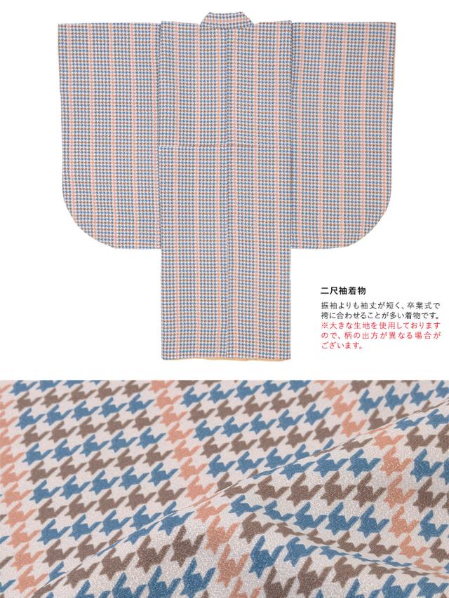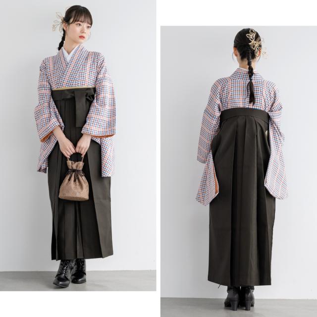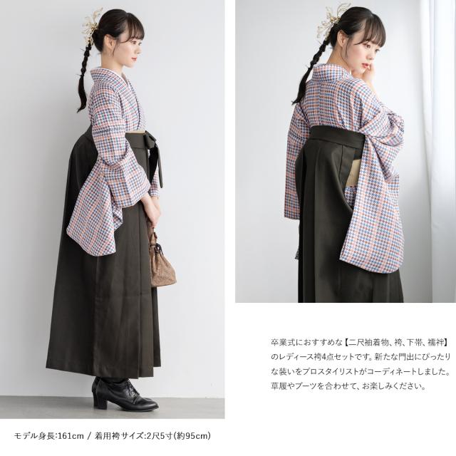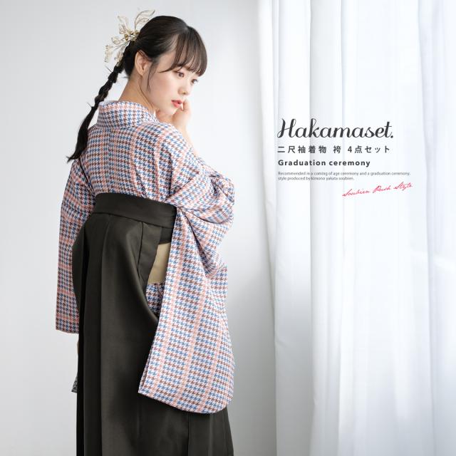 袴セット 卒業式 大学生 小学生 レディース 青 茶色 ブルー チャコール 千鳥格子 レトロモダン 袴4点セット 和装 着物セット 販売 購入 送料無料