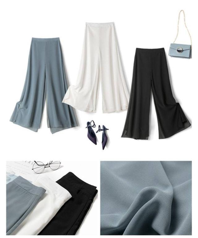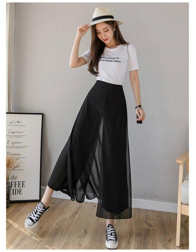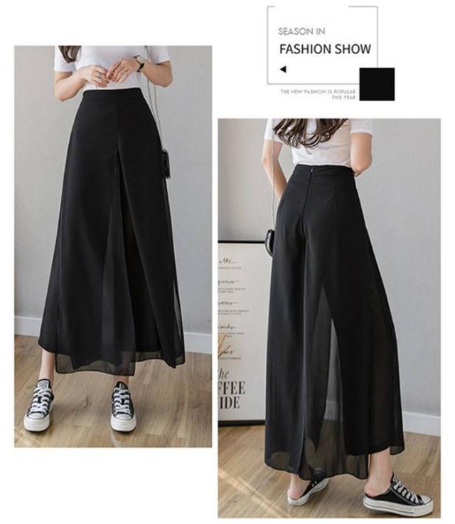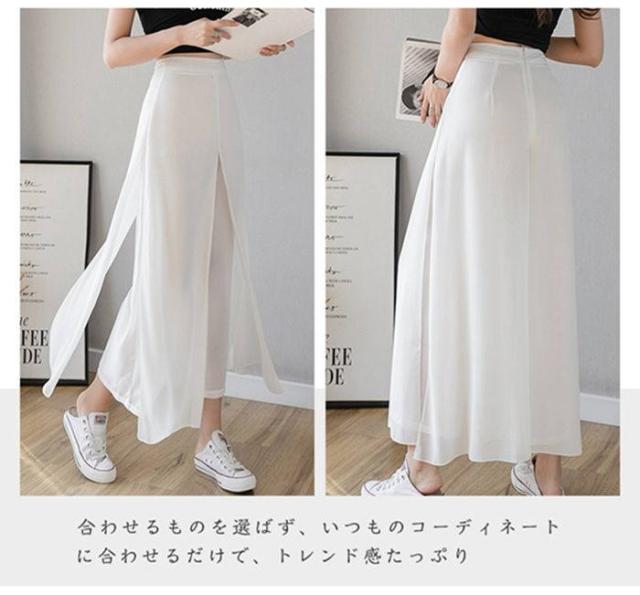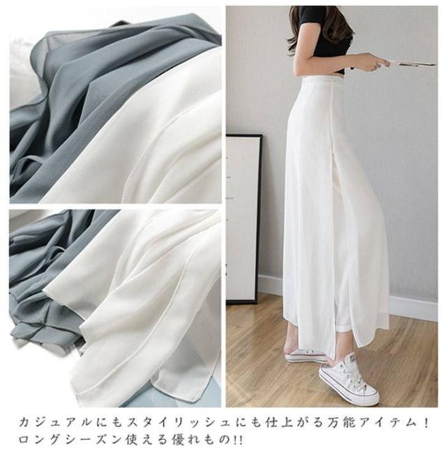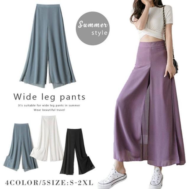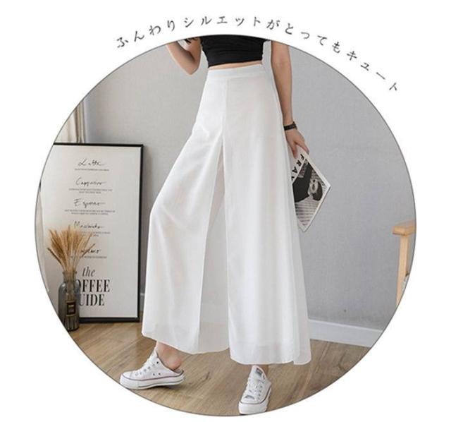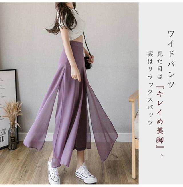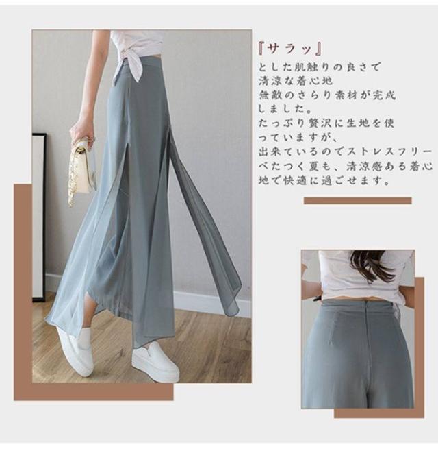 ワイドパンツ レディース 快適通気 フレアパンツ サイドスリット 9分丈 シフォン ワイドパンツ ウエストゴム ハイウエスト ガウチョパンツ 無地