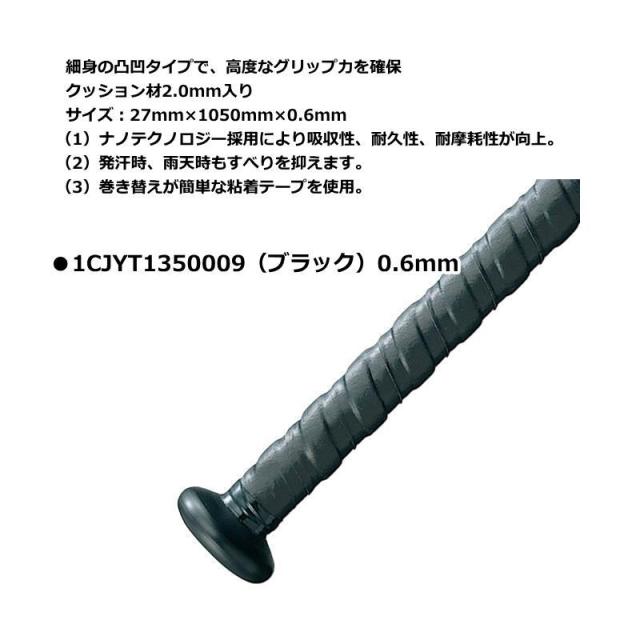 | 仕様 | ●1CJYT1330009(ブラック)1.1mm ナノテクノロジーが生んだ、手とひとつになるフィット感。 サイズ:25mm×1000mm×1.1mm (1)ナノテクノロジー採用により吸収性、耐久性、耐摩耗性が向上。 (2)発汗時、雨天時もすべりを抑えます。 (3)巻き替えが簡単な粘着テープを使用。 ●1CJYT1350009(ブラック)0.6mm 細身の凸凹タイプで、高度なグリップ力を確保 クッション材2.0mm入り サイズ:27mm×1050mm×0.6mm (1)ナノテクノロジー採用により吸収性、耐久性、耐摩耗性が向上。 (2)発汗時、雨天時もすべりを抑えます。 (3)巻き替えが簡単な粘着テープを使用。 ●1CJYT1360009(ブラック)1.1mm ぴったりフィットの穴あきタイプ サイズ:25mm×1100mm×1.1mm (1)ぴったりフィットの握り心地。 (2)巻き替えが簡単な粘着テープを使用。 ●1CJYT1340009(ブラック)3.0mm 衝撃吸収材を内蔵、がっちり感がさらにアップ。 クッション材3.0mm入り サイズ:20mm×1200mm×1.2mm (1)がっちり握れる凸凹タイプ。 (2)特殊樹脂配合によりしっかり感があり、すべりを抑えます。 (3)衝撃吸収材でバッティング時のショックを和らげます。 (4)巻き替えが簡単な粘着テープを使用。 ●1CJYT1370054(オレンジ)1.5mm 薄めのクッション入り、柔らかタイプ サイズ:25mm×1000mm×1.5mm (1)柔らかく、しっとり感のある表面加工。 (2)凹凸差は少なく、段差の違和感なく握れる。 (3)巻き替えが簡単な粘着テープを使用。 ●1CJYT1390009(ブラック)1.5mm 薄めのクッション入り、柔らかタイプ サイズ:25mm×1000mm×1.5mm (1)柔らかく、しっとり感のある表面加工。 (2)凹凸差は少なく、段差の違和感なく握れる。 (3)巻き替えが簡単な粘着テープを使用。 ●2ZT260(ブラック)1.1mm ぴったりフィットの穴あきタイプ サイズ:25mm×1100mm×1.1mm (1)ぴったりフィットの握り心地。 (2)巻き替えが簡単な粘着テープを使用。 |