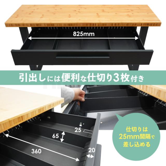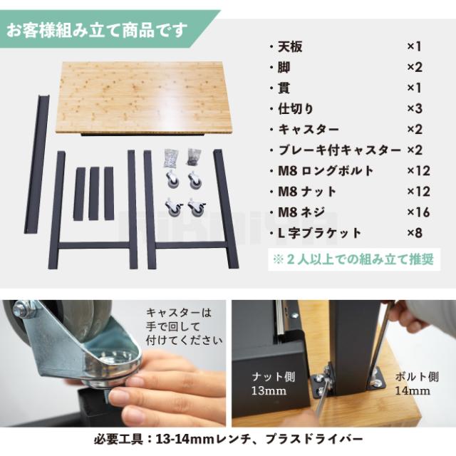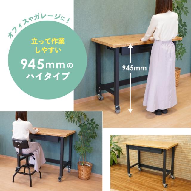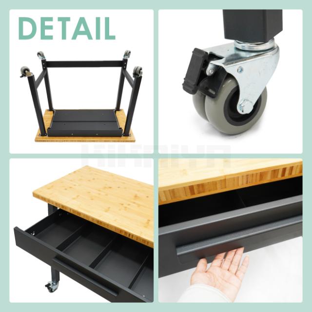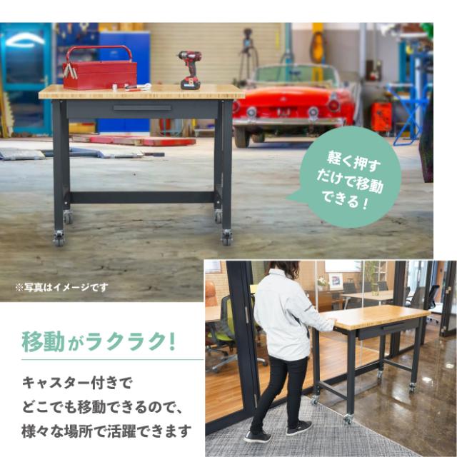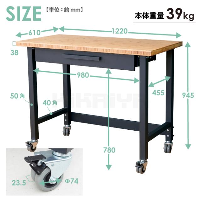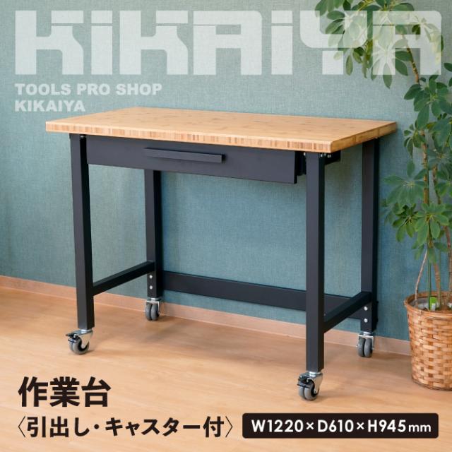 作業台 業務用 200kg W1220×D610×H945mm ワークベンチ ワークテーブル 竹集成材天板 ブルックリンスタイル 引出し キャスター付 KIKAIYA