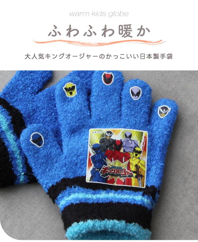 日本製ふわもこ素材子ども用手袋。キッズサイズとトドラーサイズの2サイズ。 チクチクせずに暖かい、人気キャラクターの王様戦隊キングオージャーがデザインされた子供用グローブは、クリスマス等のギフトやプレゼントにもおすすめの暖かアイテムです。
