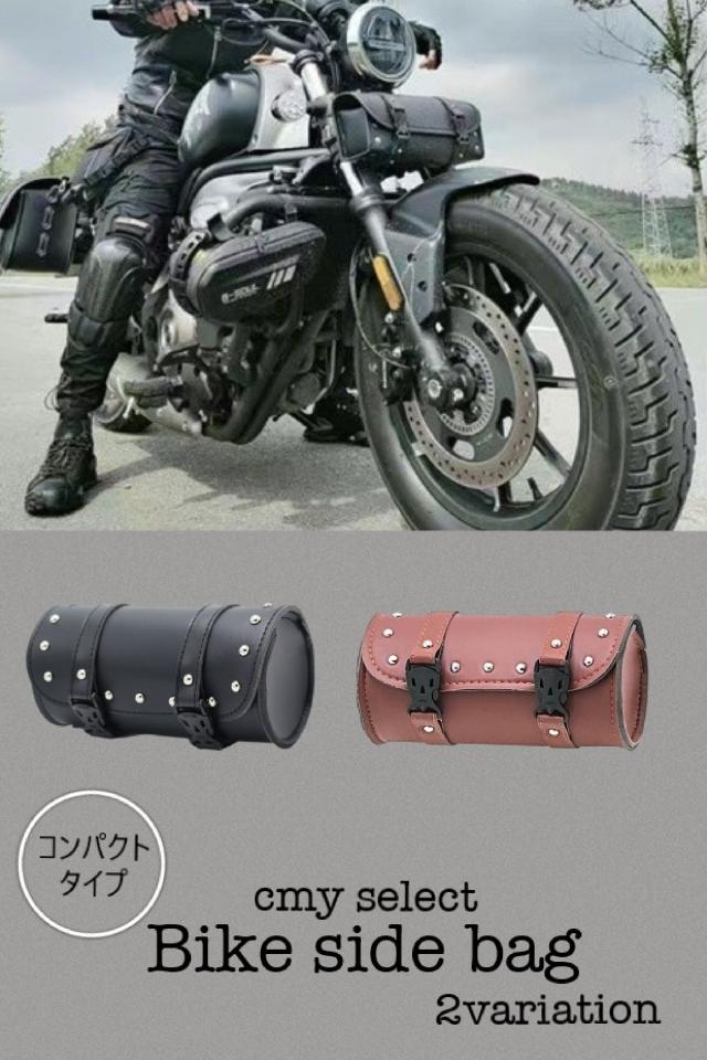 バイク サイド バッグ 汎用 小物入れ 工具入れ 防水 撥水 自転車 ブラック ブラウン スタッズ コンパクト 丸型