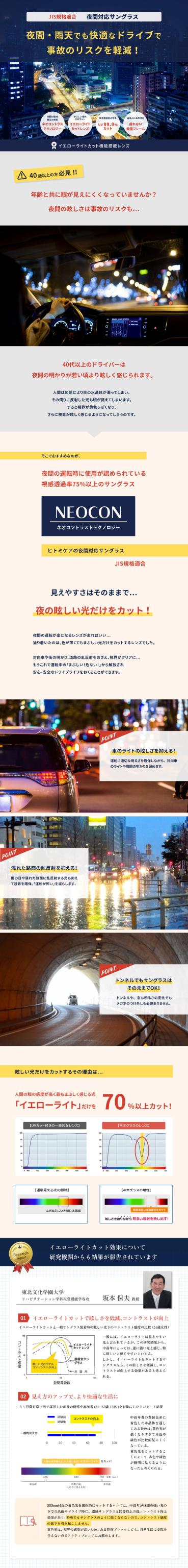・夜間の運転での眩しさを緩和するサングラスNeoContrast ネオコントラスト