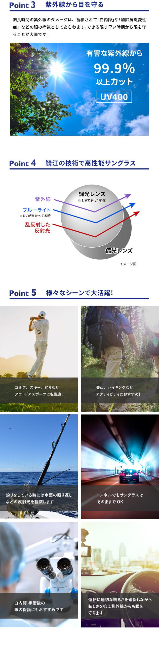 【眩しさや紫外線から眼を守る調光偏光サングラス】
