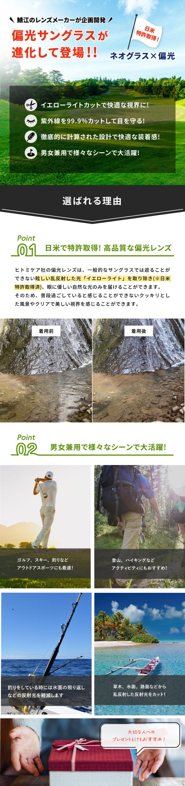 鯖江のサングラスレンズメーカーの【日米特許取得済】ネオグラス × 偏光のスポーツサングラスです! ゴルフ 野球 テニス 釣り ランニングなど様々なスポーツに活躍!