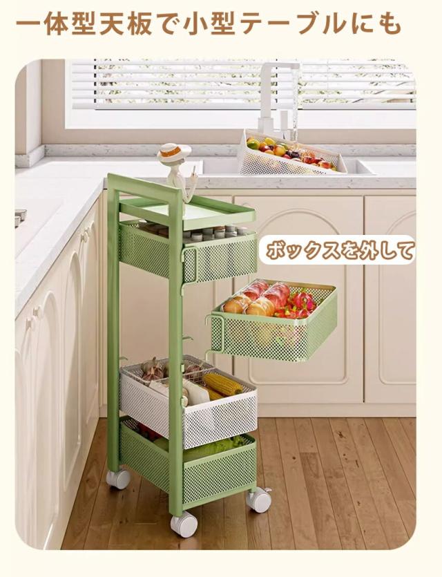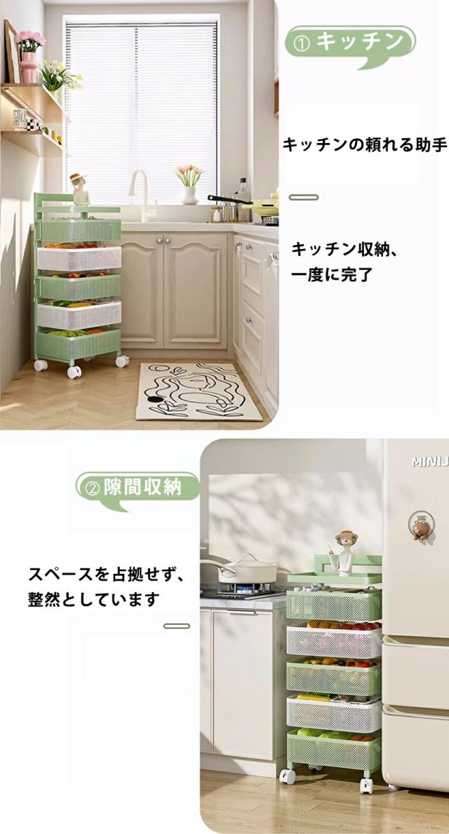 キッチンワゴン 回転 ワゴン サイドワゴン キャスター付き サイドテーブル 回転トレイワゴン 天板付き テーブル スリム キッチン収納棚 調味料ラック